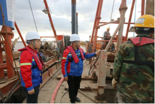“今日已完成P72-76南半幅護輪坎澆筑、P22橫梁舊橋板切割拆除、P26/27南半幅橫梁鋼筋綁扎立模、P38/C鉆孔、P36/C沖擊鉆引孔、P32/62排架水下清障以及P67-68預制空心板安裝共計七項工作,無安全隱患發生。”