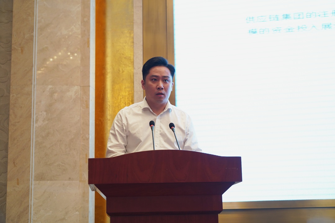 周正雄在致辭中向長期以來關心支持鹽城港發展的各界朋友表示衷心感謝,并介紹鹽城港相關情況。他說,一直以來鹽城港始終以客戶為中心,堅持“算賬式攬貨、定制化服務、分星級定價、一季一走訪、修正式創新、增效益共贏”,積極串聯供應鏈貿易、船貨代、碼頭、倉儲、運輸等全程業務鏈條,推動產業鏈和物流鏈有機結合形成穩定的供應鏈,在此基礎上,通過“供應鏈+金融”,推動產業鏈、物流鏈、供應鏈“三鏈融合”發展,全面提升價值鏈,與在座的各位客戶朋友形成緊密聯系的利益共同體、事業共同體、命運共同體。集團將以今天的活動為契機,進一步強化服務意識,充分發揮港航物流業在區域經濟中的“鏈長”效應,圍繞“全國公鐵河海聯動示范區”建設目標,加快推進沿海港口和內河港口、海上航線與內河航道互連互通,推動“三鏈”融合發展,讓“港口流量”變區域“經濟增量”。期待與各界伙伴進一步加強交流、創造條件、共享機遇,攜手共贏、共創未來。