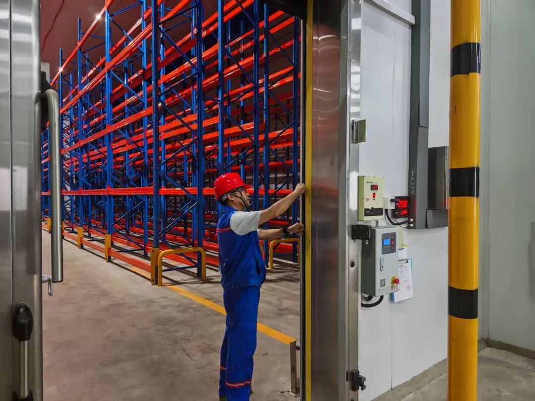 為減少冷量流失、降低設(shè)備運(yùn)行壓力,港匯保稅從“規(guī)范管理+物理防護(hù)”雙管齊下。優(yōu)化開門管理:明確冷庫門使用規(guī)范并張貼展板上墻,同步優(yōu)化作業(yè)流程,單次開門作業(yè)不超過5分鐘、非必要不頻繁開關(guān)門,減少冷量外泄;強(qiáng)化保溫修補(bǔ):定期檢查庫體保溫層,對(duì)發(fā)現(xiàn)的裂縫、孔洞等破損,采用高性能保溫材料及時(shí)修補(bǔ),從源頭減輕制冷設(shè)備負(fù)荷,既延長設(shè)備使用壽命,又進(jìn)一步減少能耗損耗。