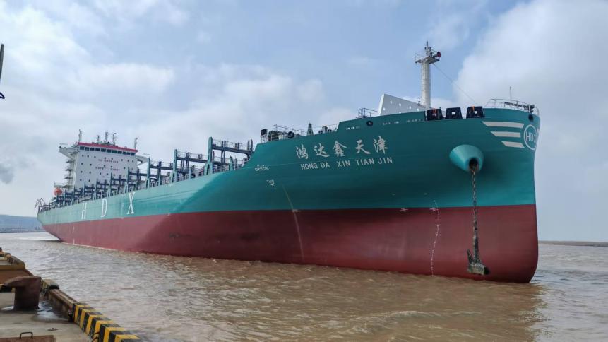 近日,由江蘇勤豐船業有限公司傾力打造的“鴻達鑫天津”輪,在響水港區4#泊位首航儀式成功舉行。在本次船舶出口過程中,響水港區與鹽城海關密切配合、高效聯動,為這艘“鹽城造”船舶順利揚帆國際海域提供了全方位服務保障。此次“鴻達鑫天津”輪的順利出口,不僅標志著響水港區助力鹽城船舶制造業邁上國際化發展新臺階,也為全市外貿穩規模、優結構注入了強勁動能。